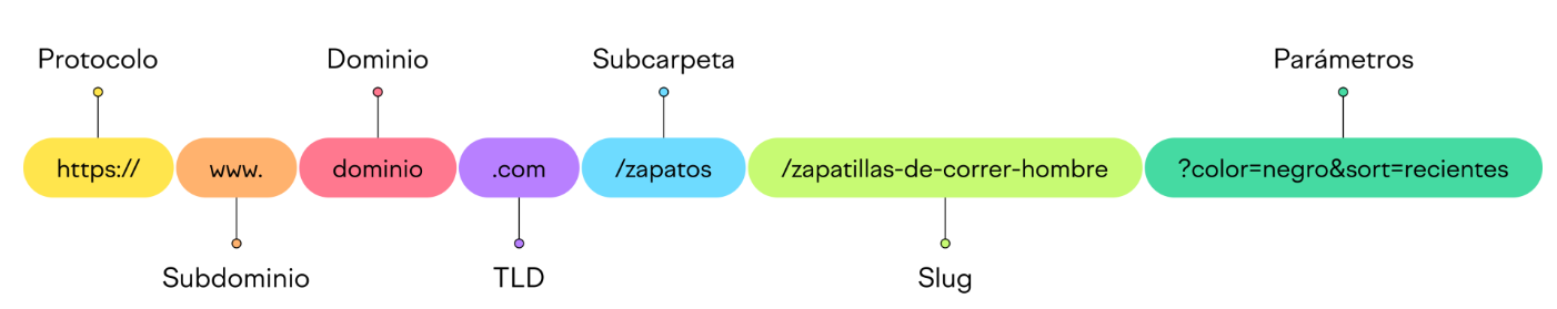 - Explica la definición y ejemplos de cada elemento en la Estructura de una URL: