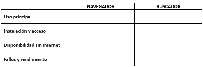 - Abrir el Navegador (Google Chrome) y buscar: "navegadores vs buscadores"