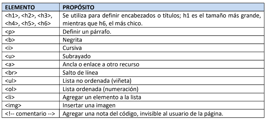 - Definir la estructura de la página: Se utilizan para crear encabezados, párrafos, listas, tablas, formularios, etc.
